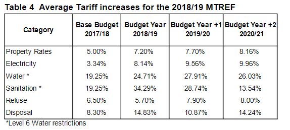 The proposed average rates and tariff increases for 2018-19 are shown the table below.